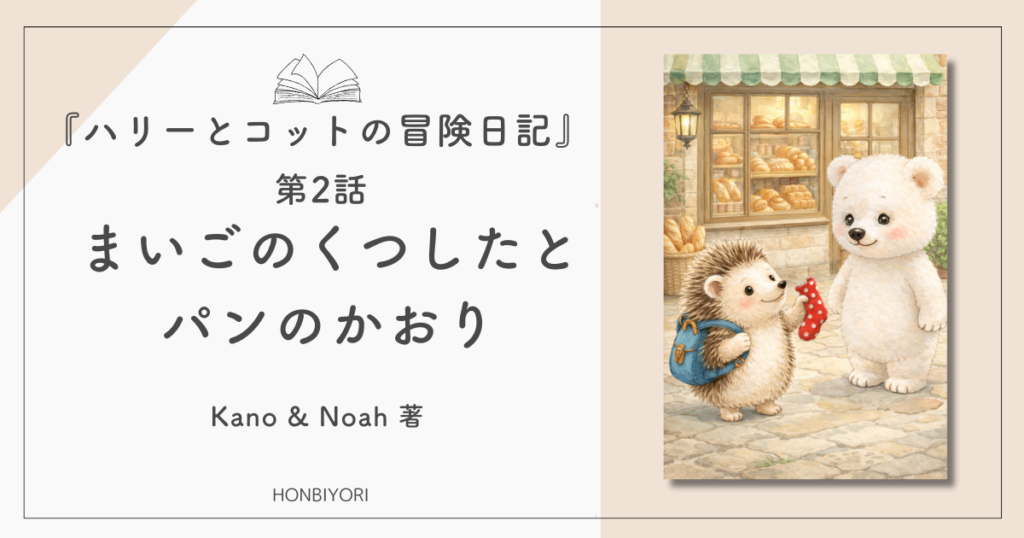 第2話|まいごのくつしたと、パンのかおり 朝焼けの空を背に、ハリーとコットは小さな坂をのぼっていました。 まだ町は静かで、すこし肌寒い空気のなかを、ふたりはことこと歩きます。 「ねえ、コット。あれ……けむり?」 坂の先に、ふわりと白い煙が立ちの... -