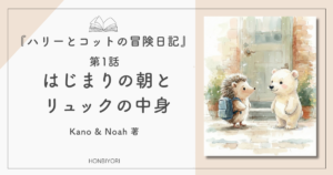 くつしたとパンをリュックに入れて、また朝の道を歩き出します。